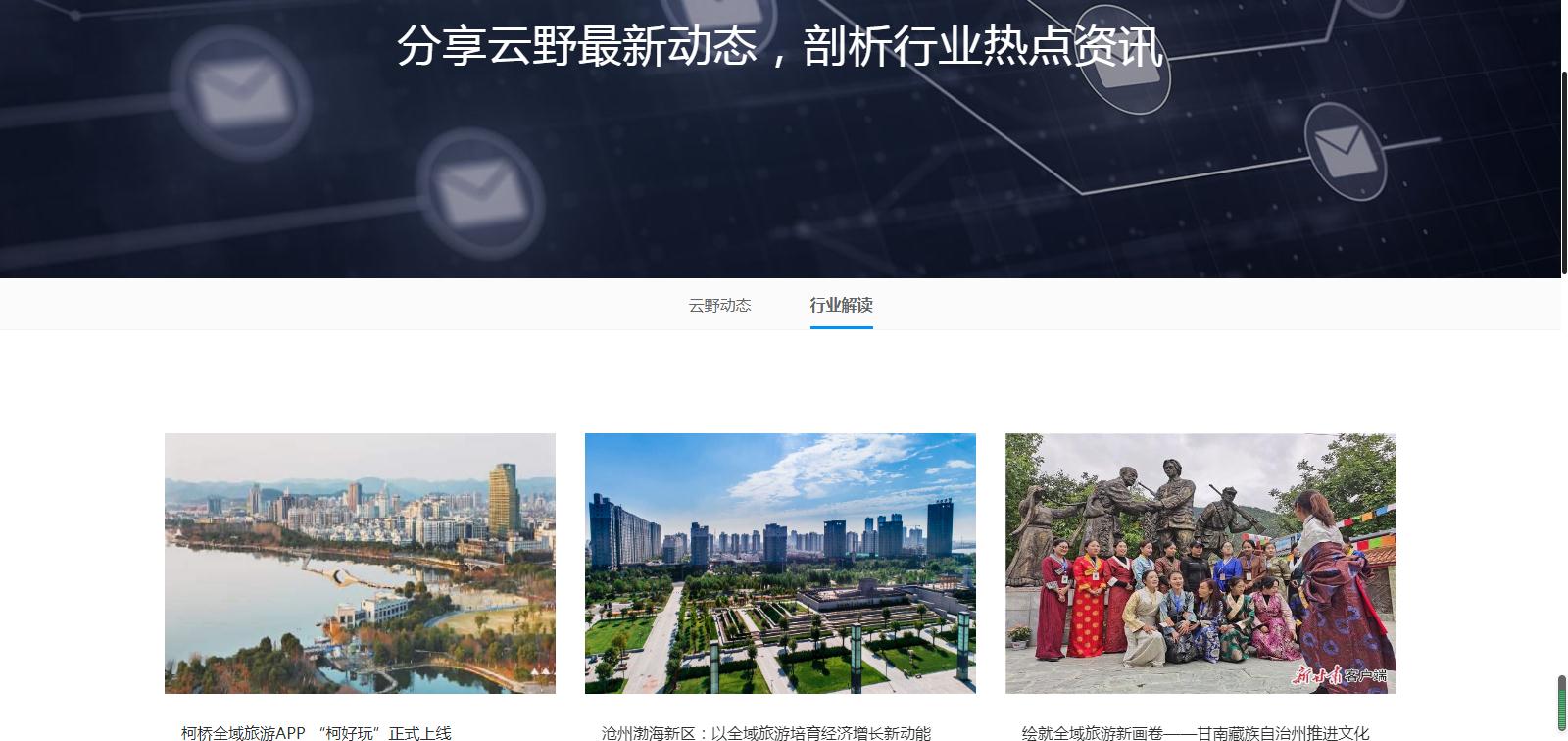 浙江云野科技有限公司是一家專注于智慧文旅建設(shè)、全域旅游運(yùn)營(yíng)及旅游大數(shù)據(jù)研究的高科技企業(yè),公司注重“智慧文旅”應(yīng)用創(chuàng)新,運(yùn)用云計(jì)算、物聯(lián)網(wǎng)、VR/AR、AI、區(qū)塊鏈等技術(shù),為景區(qū)、旅游目的地等提供集“智慧旅游規(guī)劃 定制技術(shù)開(kāi)發(fā) 旅游品牌策劃推廣 運(yùn)營(yíng)維護(hù)”等一系列有效的解決方案。