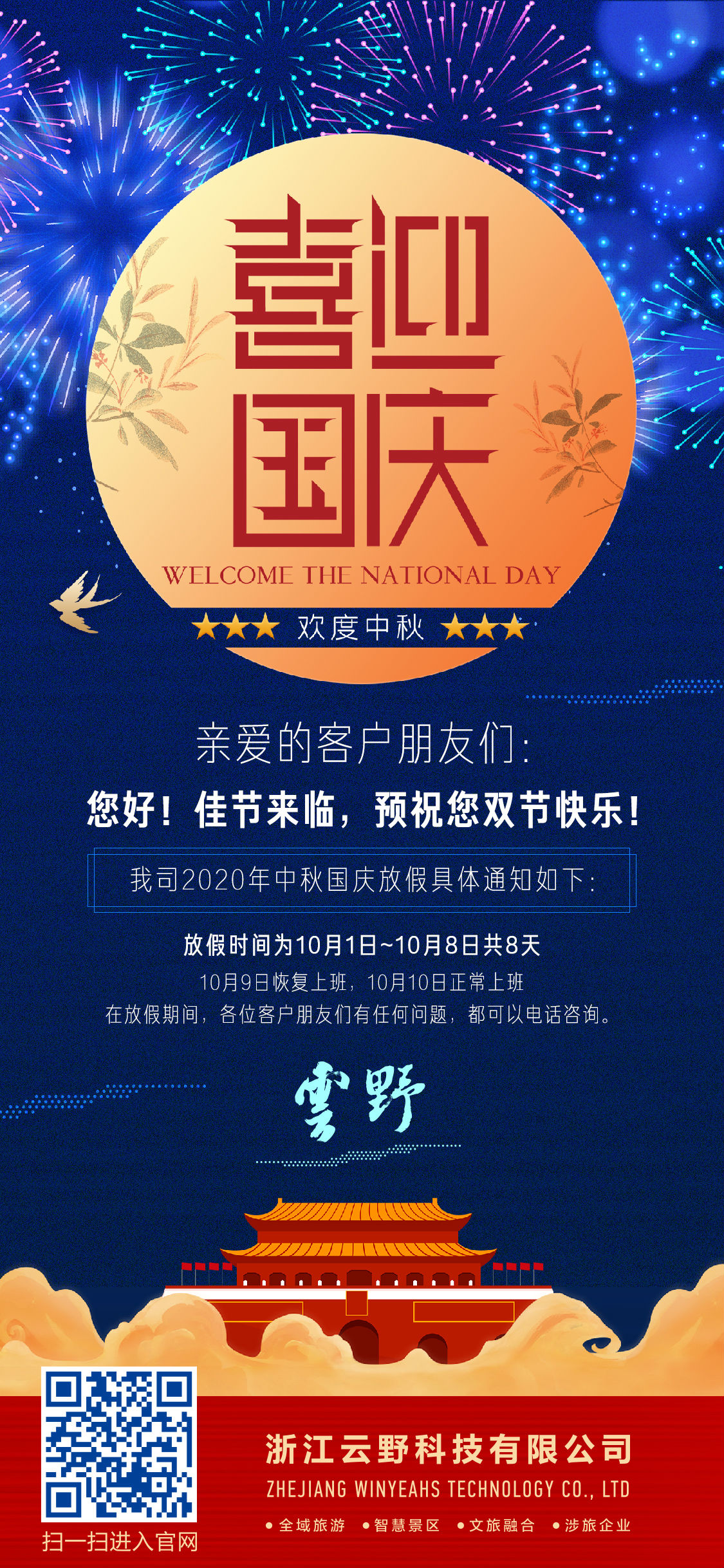 佳節(jié)來(lái)臨,云野科技祝您雙節(jié)快樂(lè)!